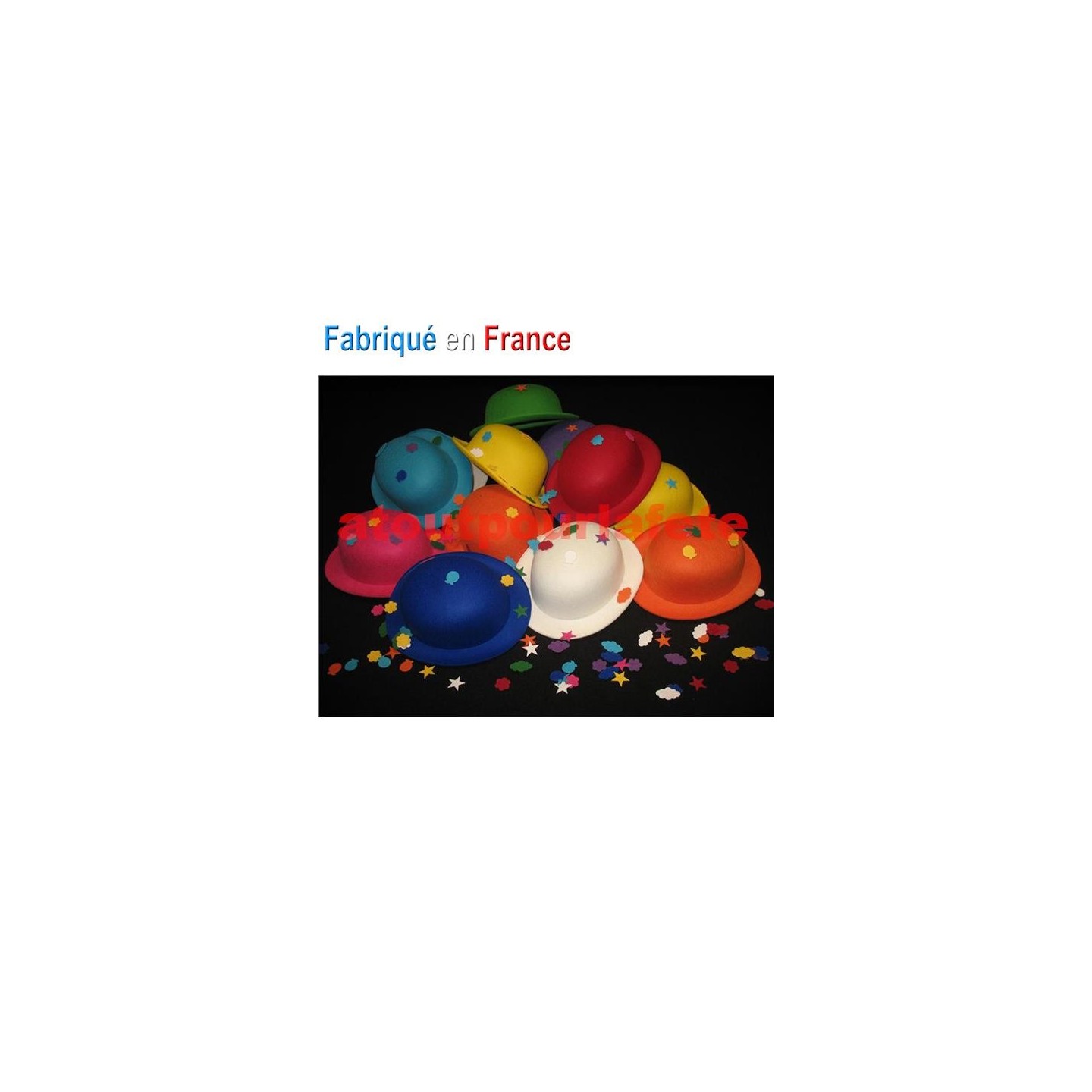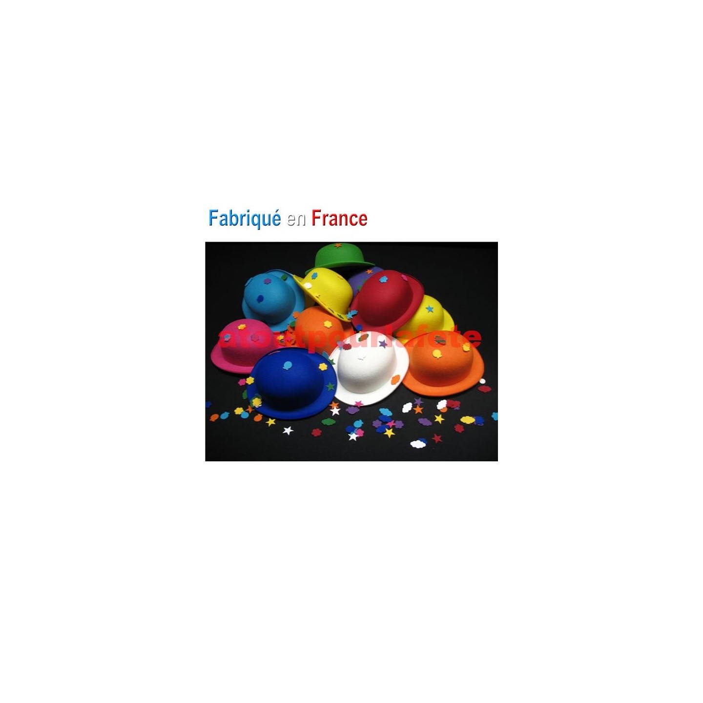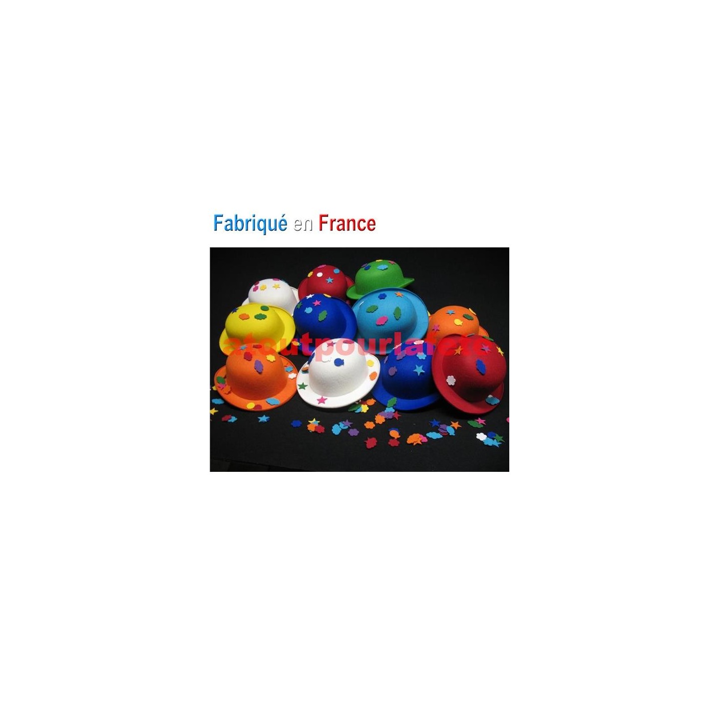 Lot de 24 chapeaux melon enfant en coloris assortis et 288 Motifs