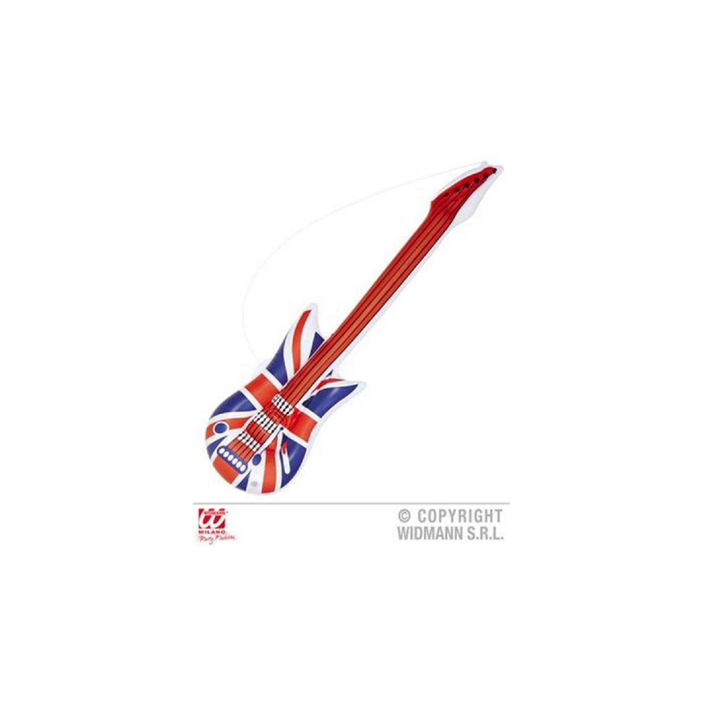 Guitare gonflable imitant une guitare électrique réaliste mesurant 105 cm de longueur.