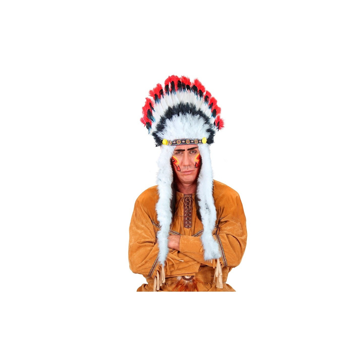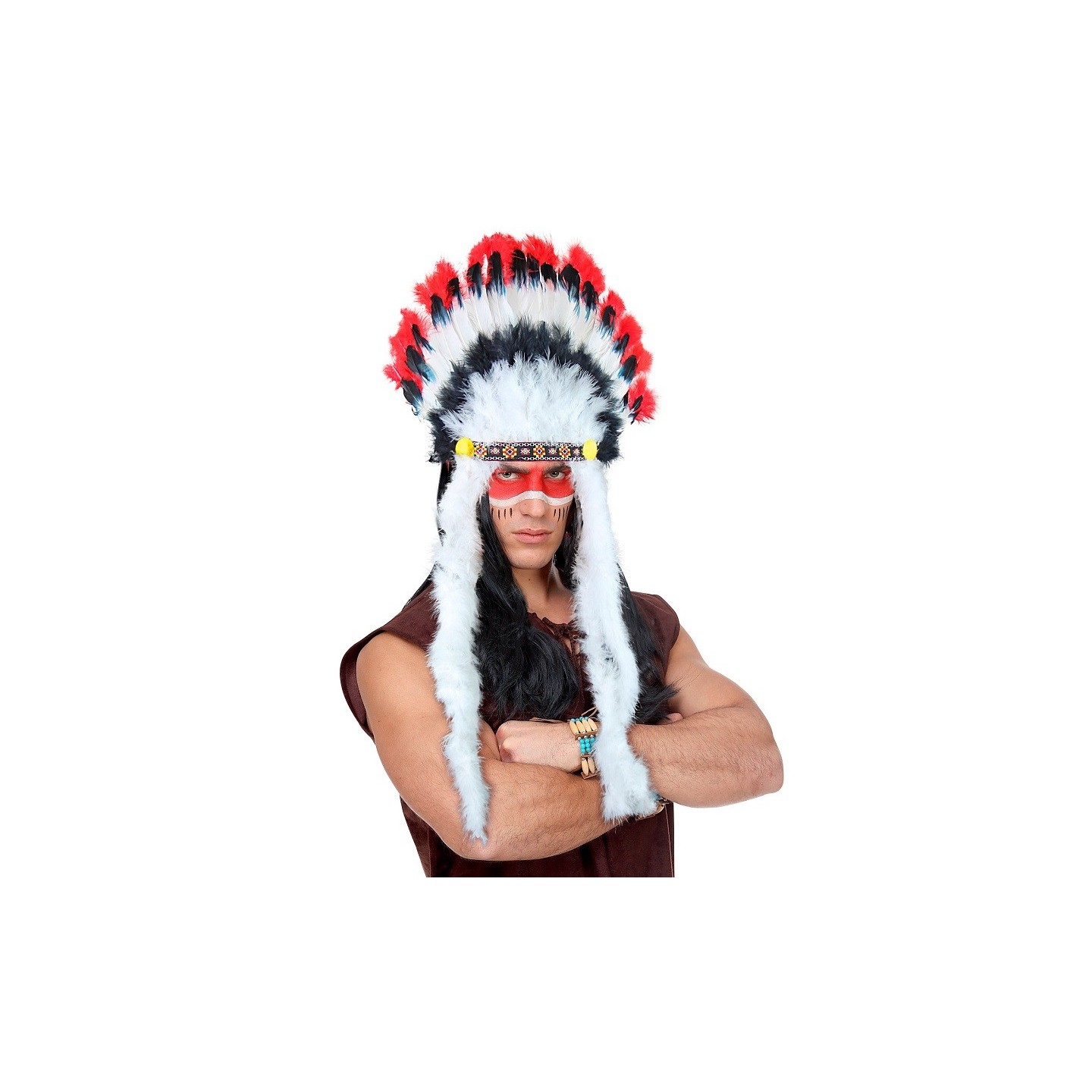 Coiffe de Chef Indien rouge et noire (luxe) pour adulte