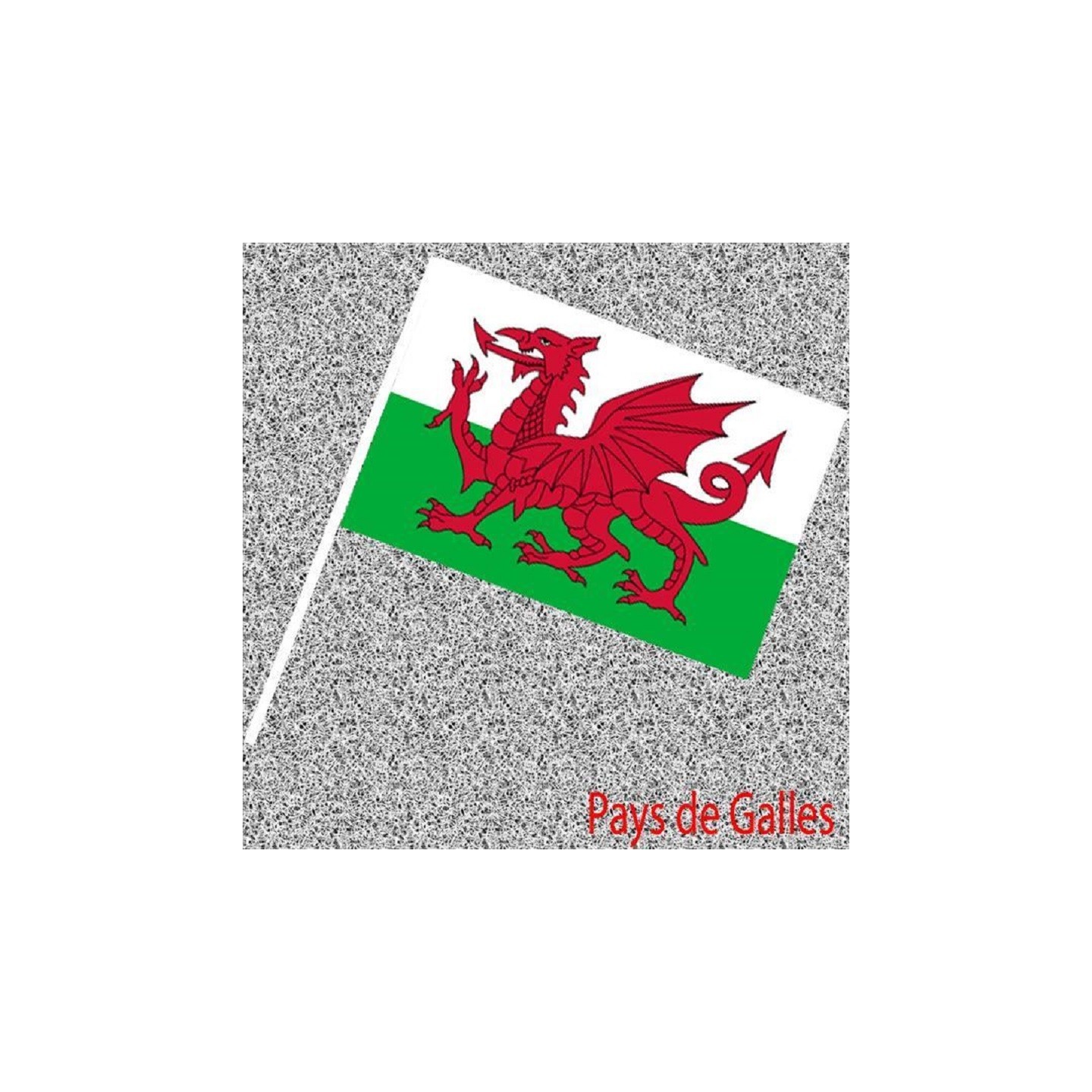 • 6 Drapeaux Gallois, Pays de Galles, Wales, Cymru, Nationaux en papier 14x21cms avec tige (Fabrication Française)