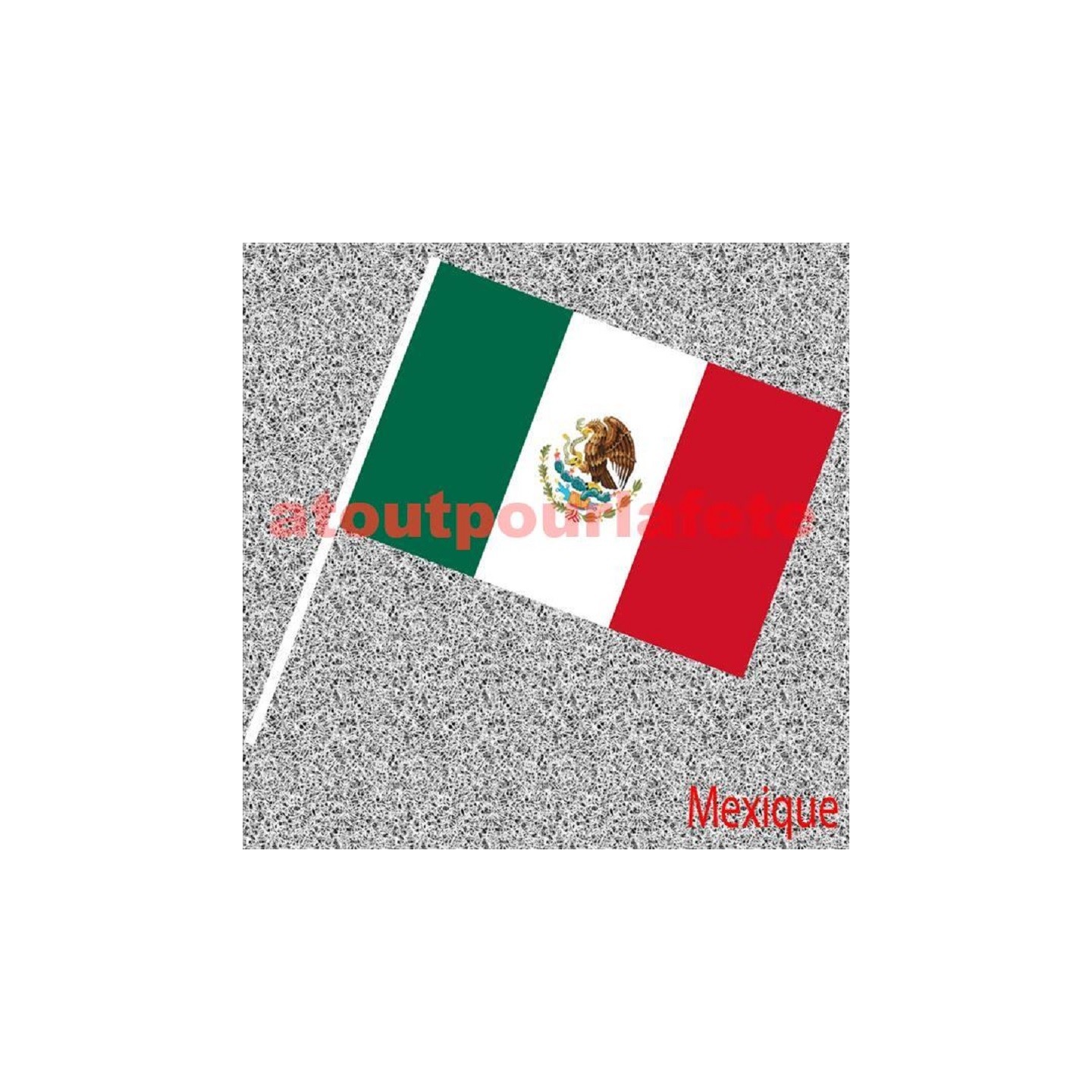 • 6 Drapeaux Méxique, Méxicain, Nationaux en papier 14x21cms avec tige (Fabrication Française)