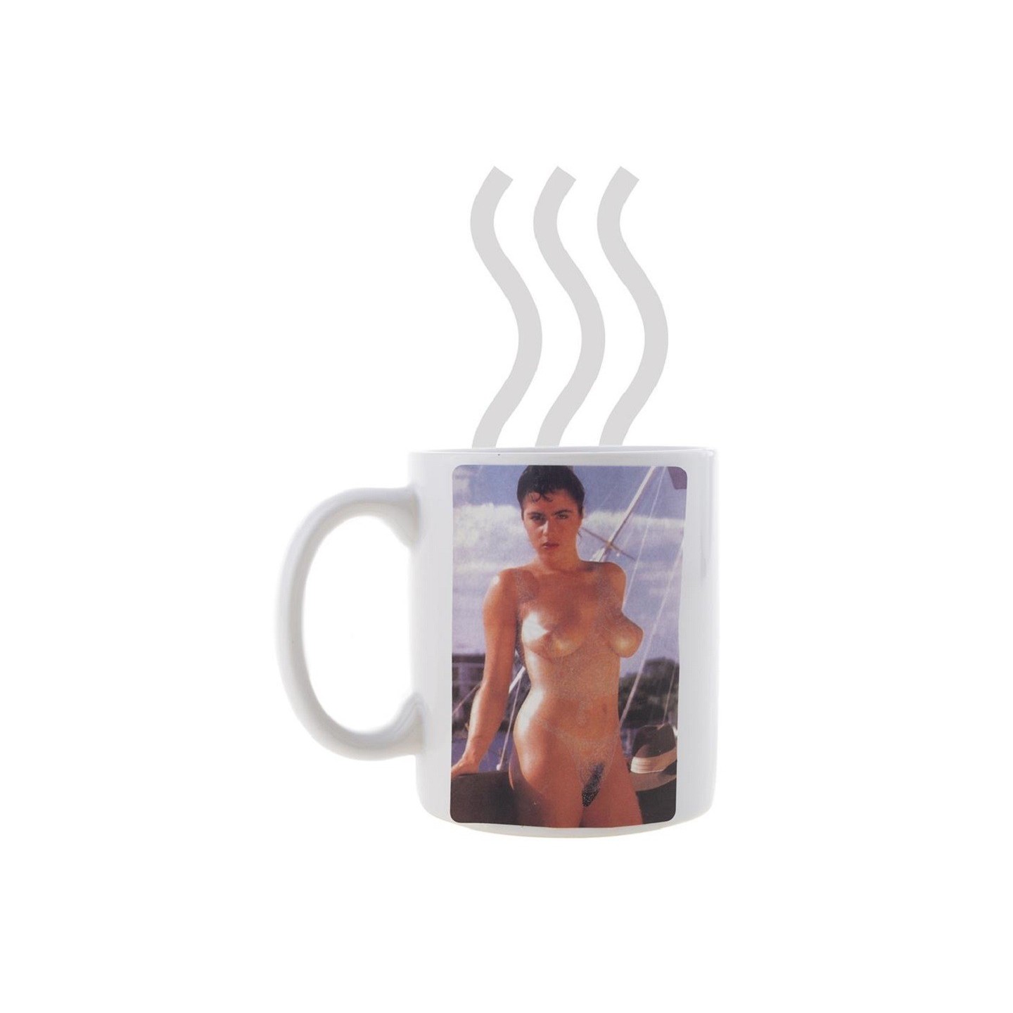 Remplissez le mug d'une boisson chaude et la pin-up se déshabillera